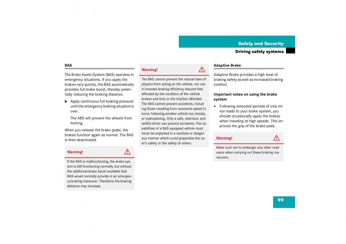 brakes function again as normal. The BAS never be exploited in a reckless or danger-