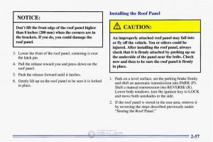 3. Lower zyxwvutsrqponmlkjihgfedcbaZYXWVUTSRQPONMLKJIHGFEDCBAthe roof panel onto the vehicle, rear edge first,