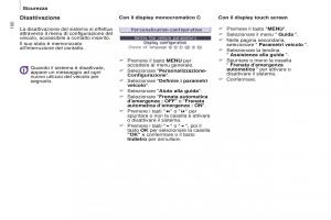 Quando il sistema è disattivato, accedere al menu generale." Frenata d'emergenza