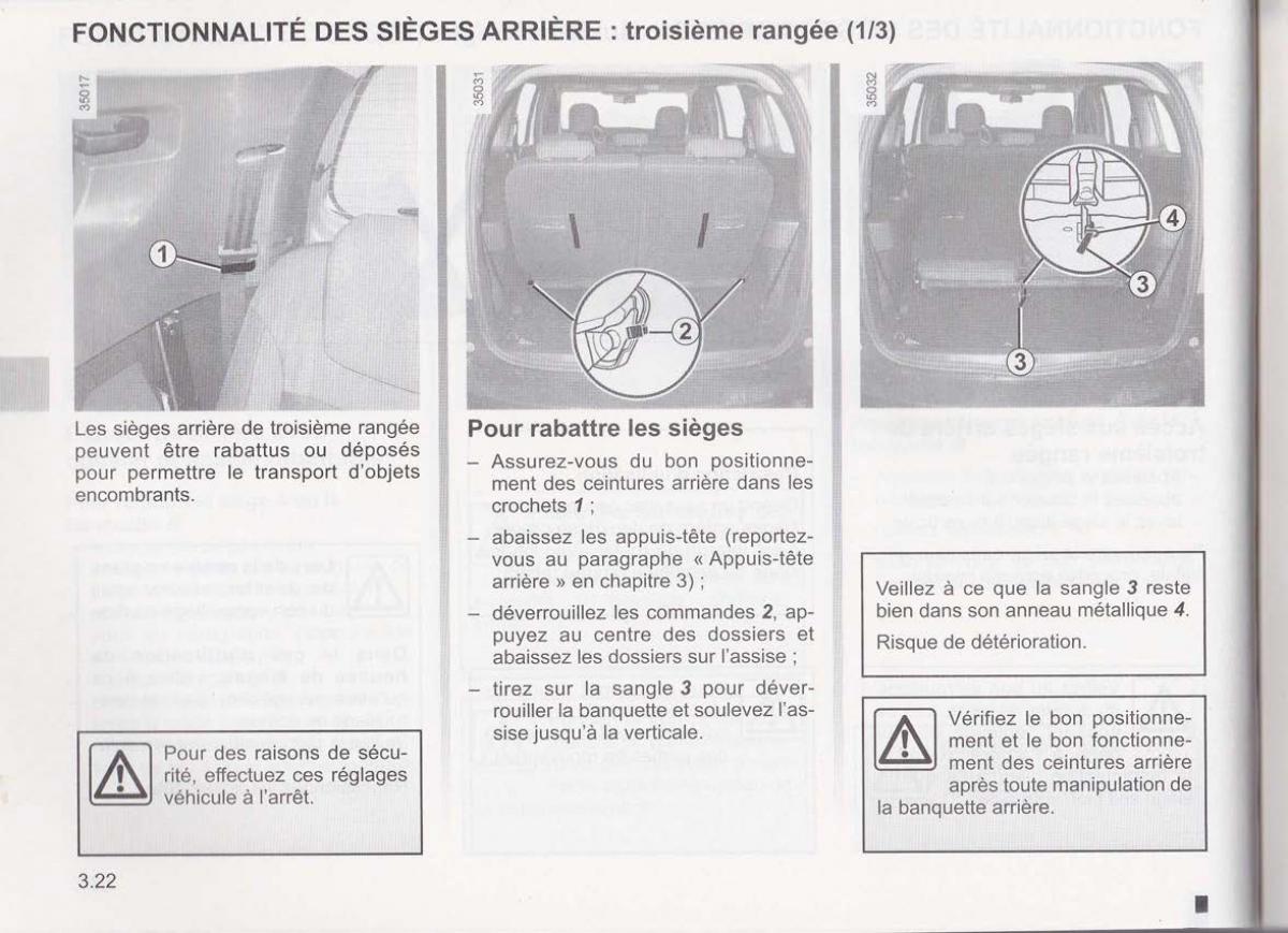 Les sièges arrière de troisième rangée Pour rabattre Ies sièges