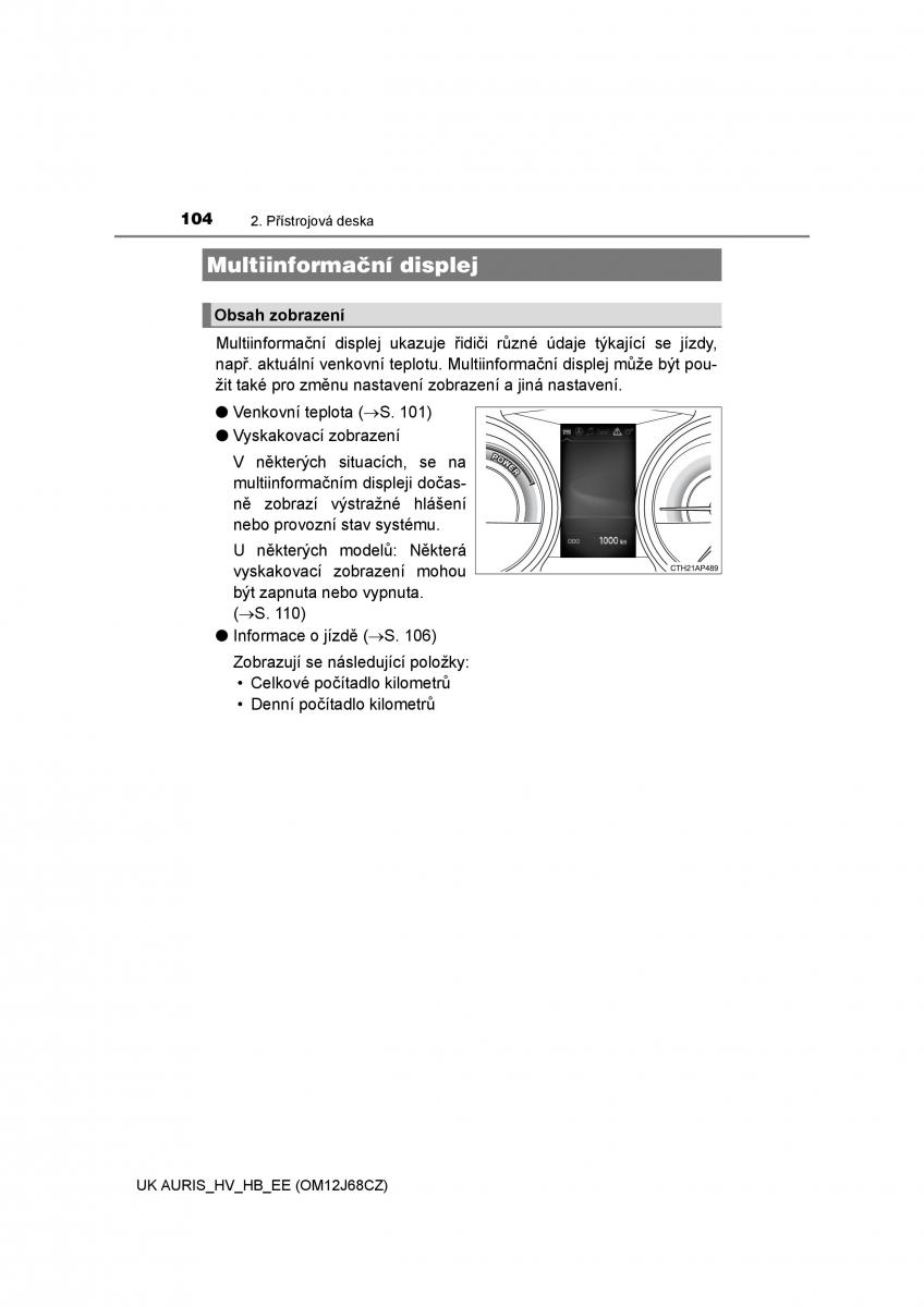 104 2. PĜístrojová deska