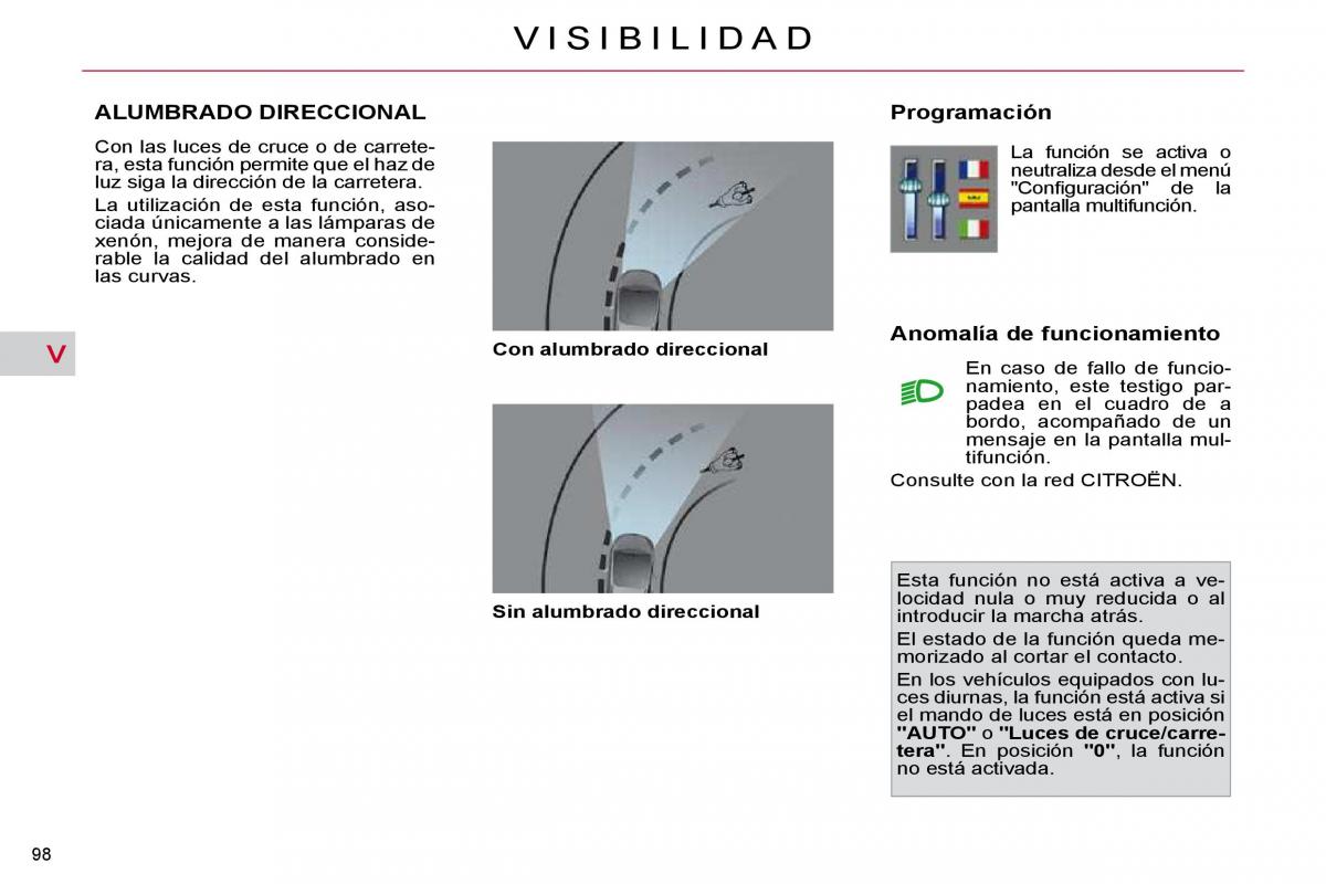 C on alumbrado direccional A nomalía de funcionamiento