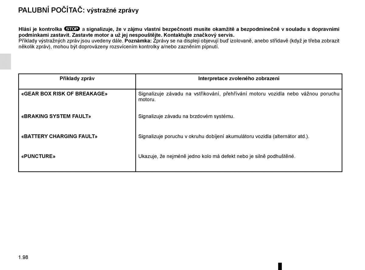 «GEAR BOX RISK OF BREAKAGE» Signalizuje závadu na vstĜikování, pĜehĜívání motoru vozidla nebo vážnou poruchu