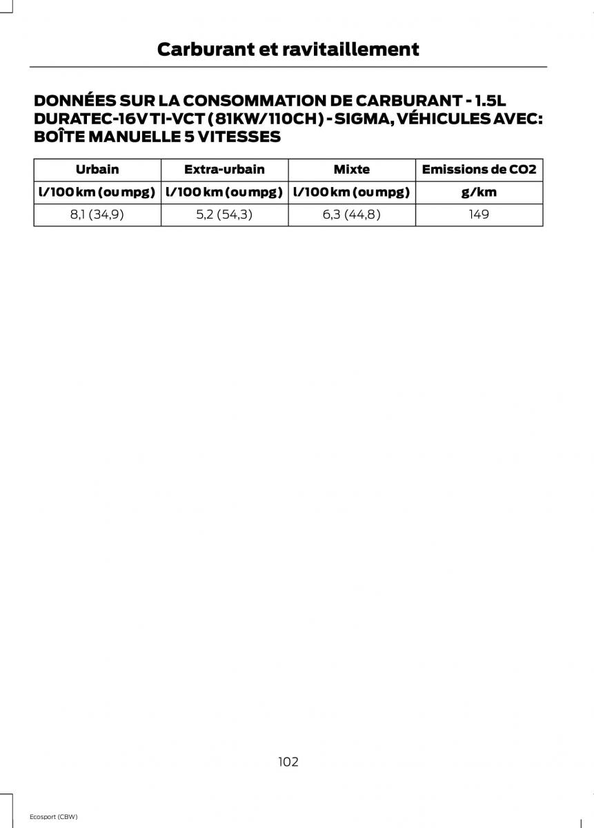 DONNÉES SUR LA CONSOMMATION DE CARBURANT - 1.5L