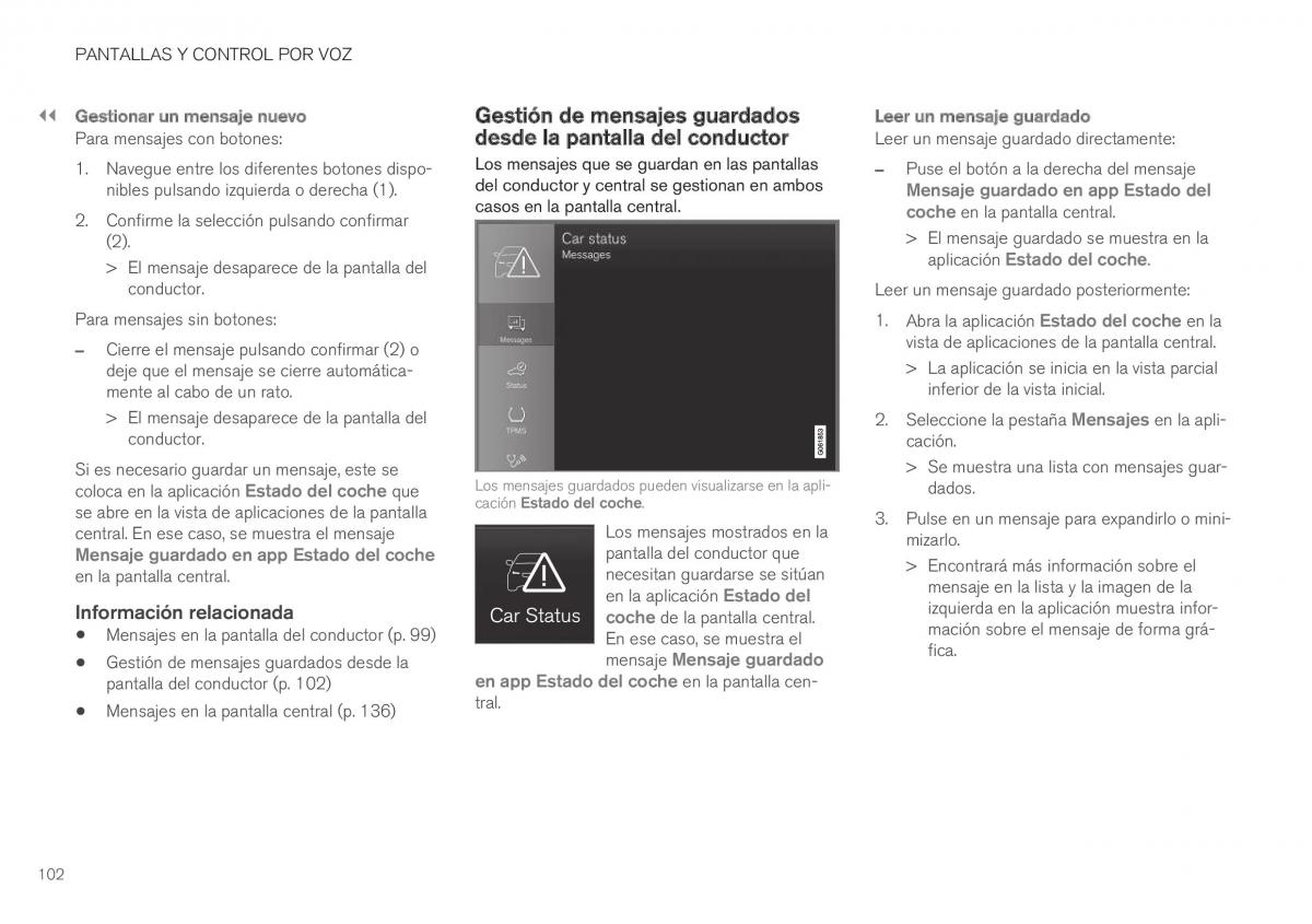 pantalla del conductor (p. 102)en app Estado del coche en la pantalla cen-