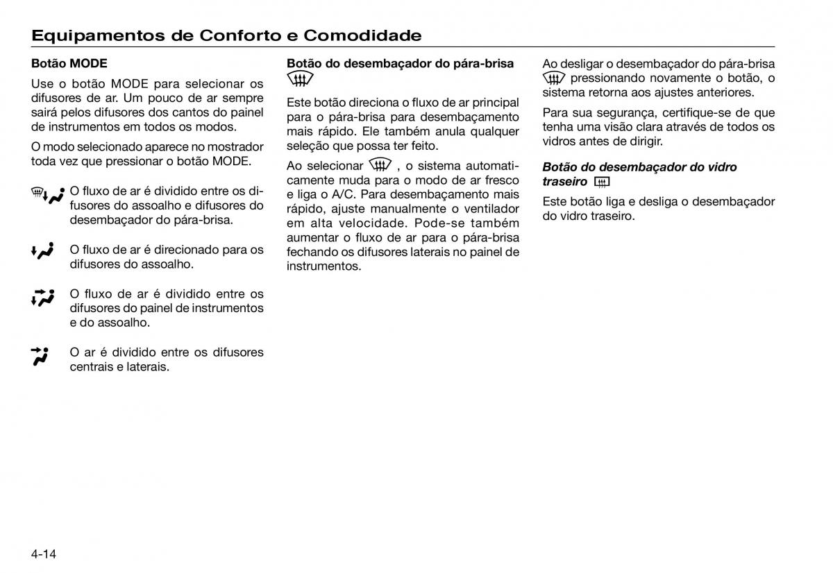 toda vez que pressionar o botão MODE. Ao selecionar , o sistema automati- Botão do desembaçador do vidro