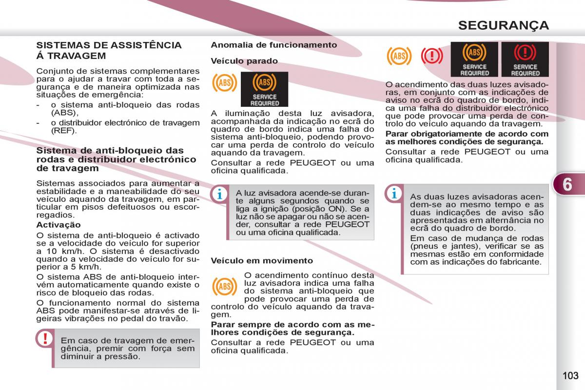 aquando da travagem. Consultar a rede PEUGEOT ou uma