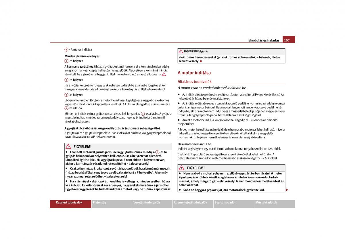 amíg a kormányzár csapja hallhatóan reteszelődik. Alapvetően a kormányt mindig A motor indítása