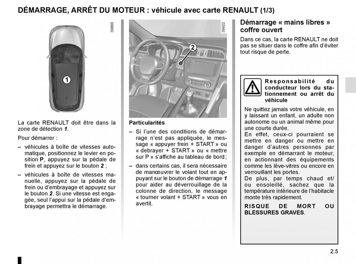 DÉMARRAGE, ARRÊT DU MOTEUR : véhicule avec carte RENAULT (1/3)