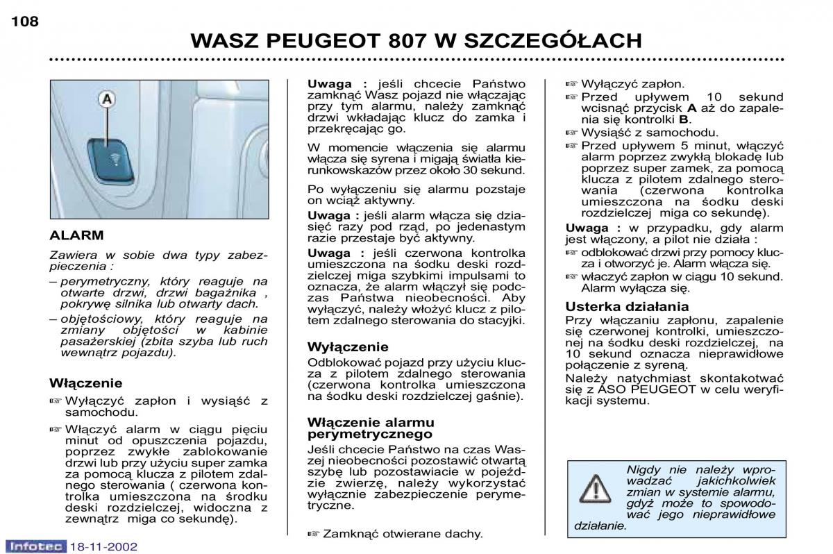 owners manual Peugeot 807 - year of production: 2002, 2003, 2004, 2005, 2006, 2007, 2008, 2009, 2010, 2011, 2012, 2013, 2014 - Peugeot 807 instrukcja obslugi PL