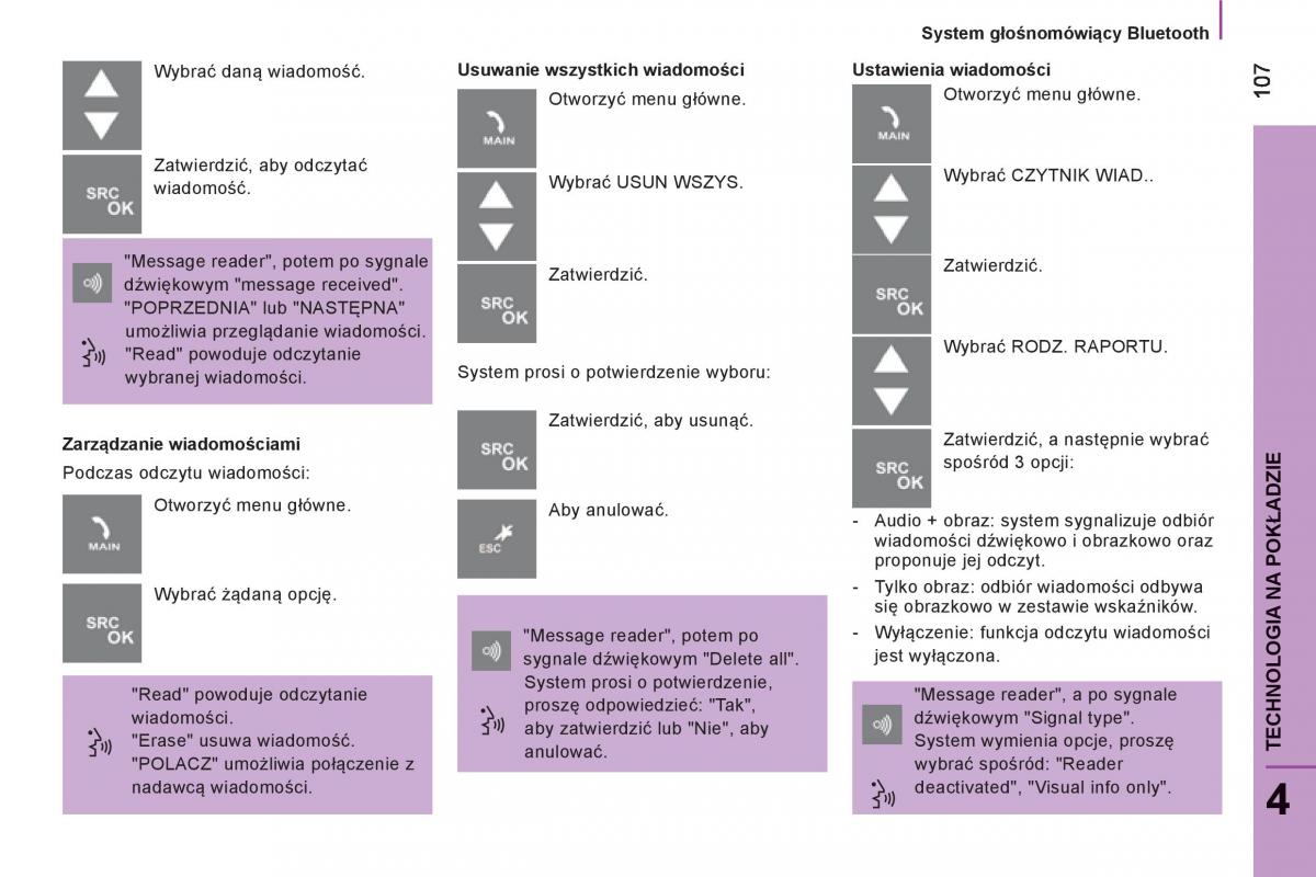 "Read" powoduje odczytanie proszĊ odpowiedzieΕ: "Tak", "Message reader", a po sygnale