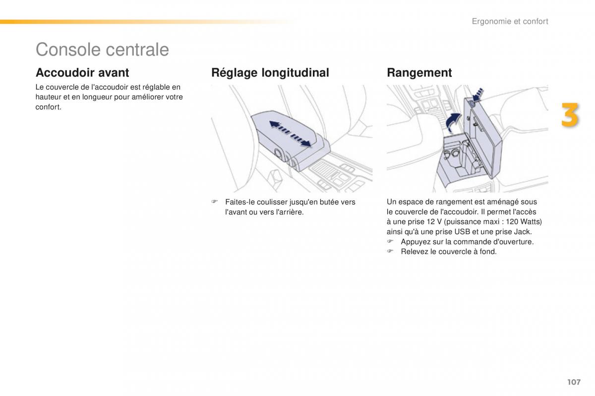 l'avant ou vers l'arrière. le couvercle de l'accoudoir. Il permet l'accès