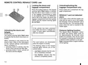to indicate that the doors have been un-RENAULT card, remote locking and