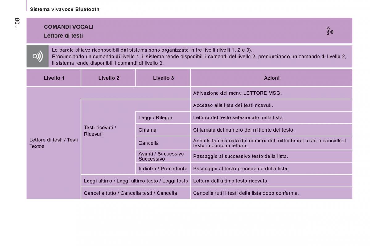 Pronunciando un comando di livello 1, il sistema rende disponibili i comandi del livello 2; pronunciando un comando di livello 2,