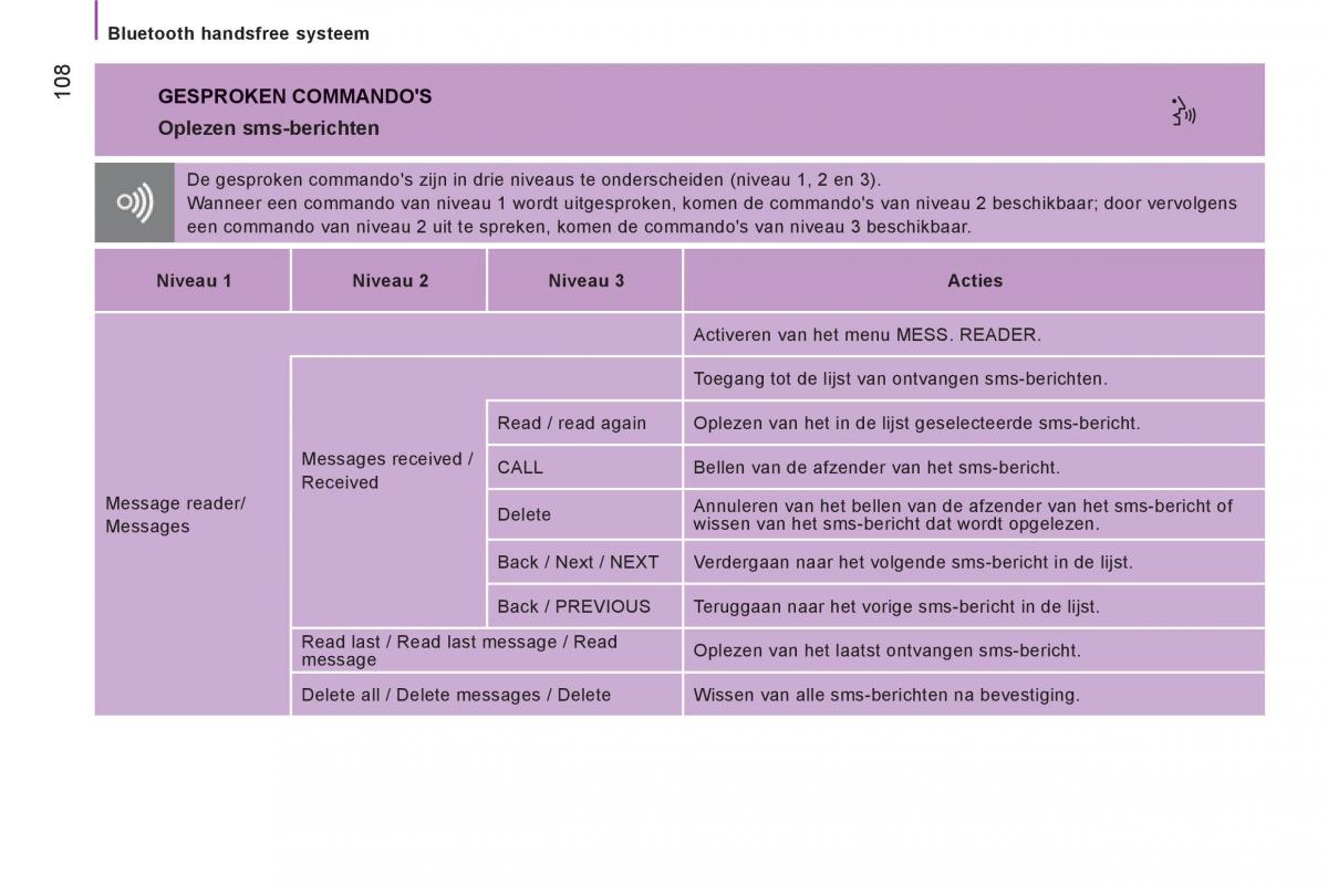 De gesproken commando's zijn in drie niveaus te onderscheiden (niveau 1, 2 en 3).