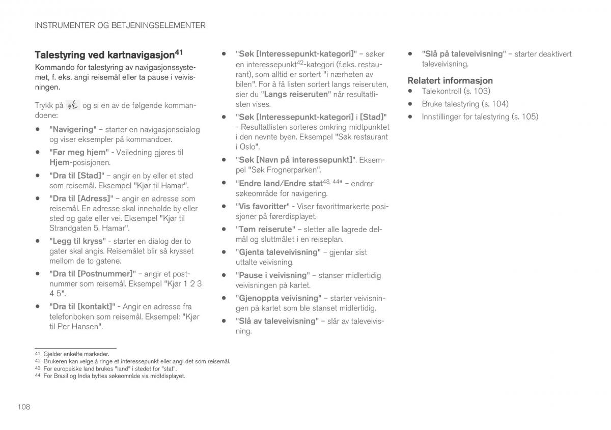 doene: "Søk [Interessepunkt-kategori] i [Stad]" Innstillinger for talestyring (s. 105)