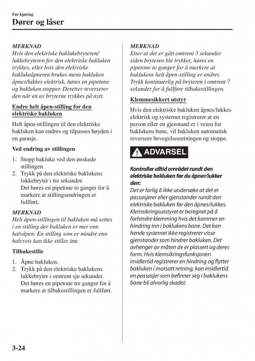 fullført. elektriske bakluken før den åpnes/lukkes.