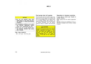 from owners manual to the vehicle Toyota MR2 Spyder, year of production 1999 - 2007: