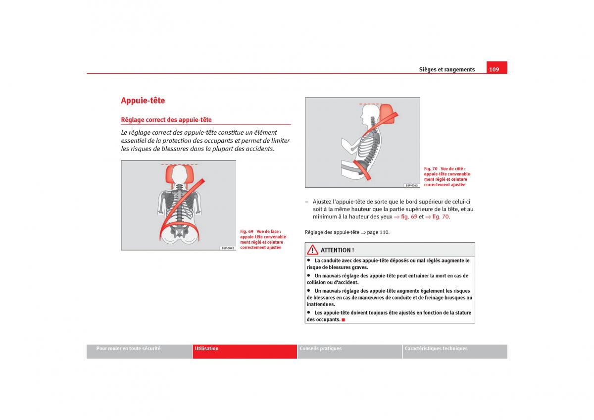 Fig. 69 Vue de face : Réglage des appuie-tête ⇒page110.