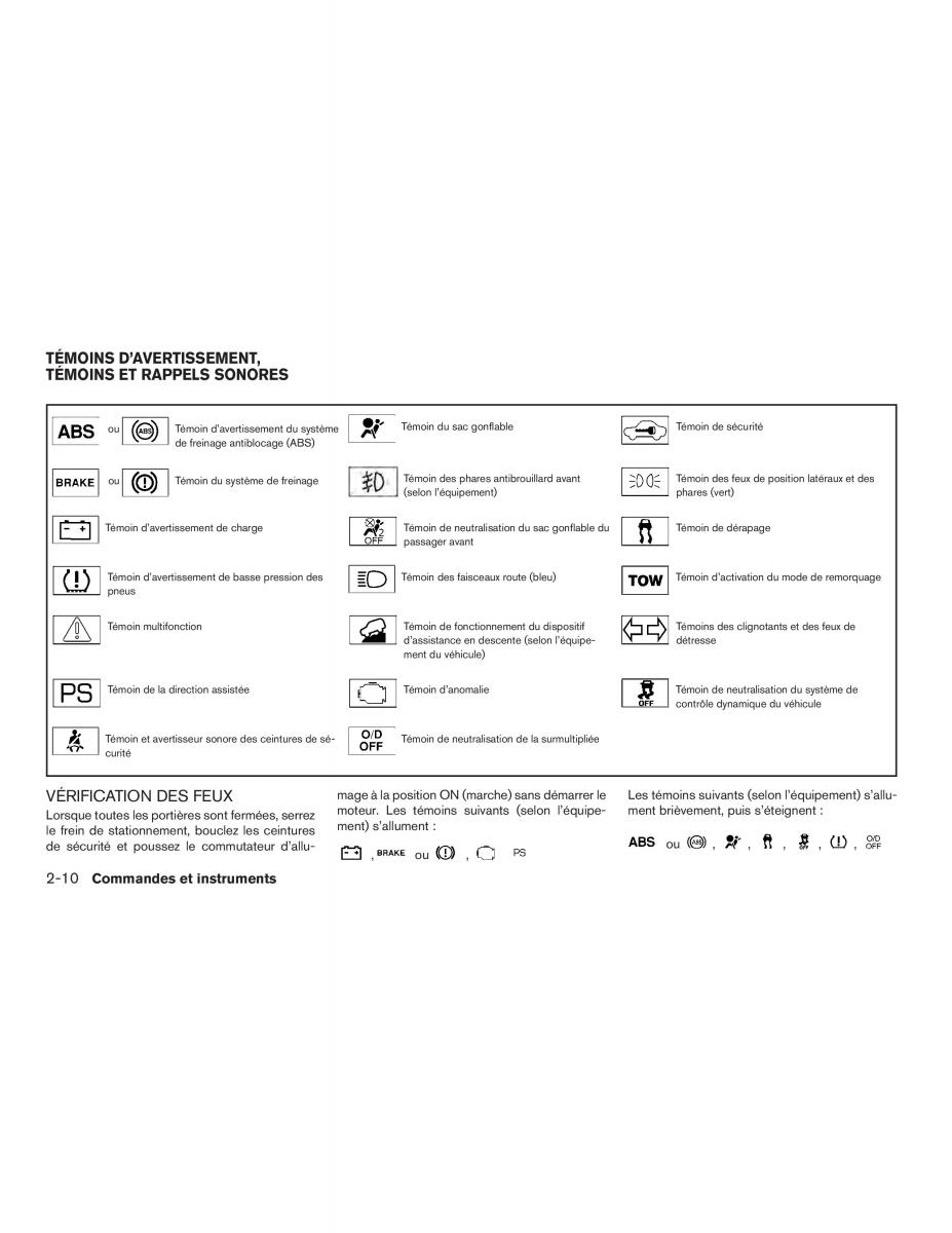 VÉRIFICATION DESFEUX mageàlapositionON(marche)sansdémarrerleLestémoinssuivants (selon l’équipement) s’allu-
