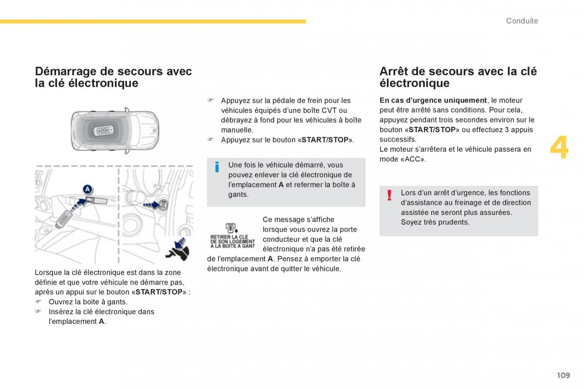 Démar rage de secours avec Ar rêt de secours avec la clé