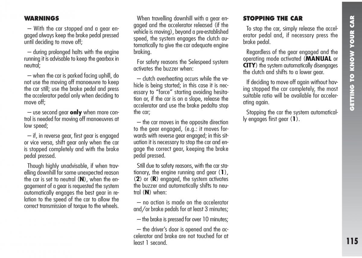 – use second gear only when more con-the car; Stopping the car the system automatical-GETTING TO KNOW YOUR CAR