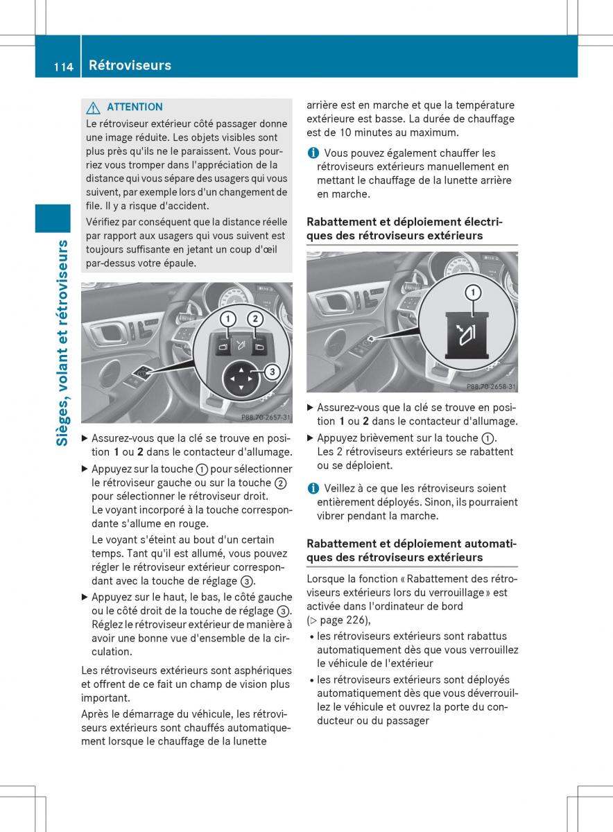 tion 1 ou 2 dans le contacteur d'allumage.Les 2 rétroviseurs extérieurs se rabattent