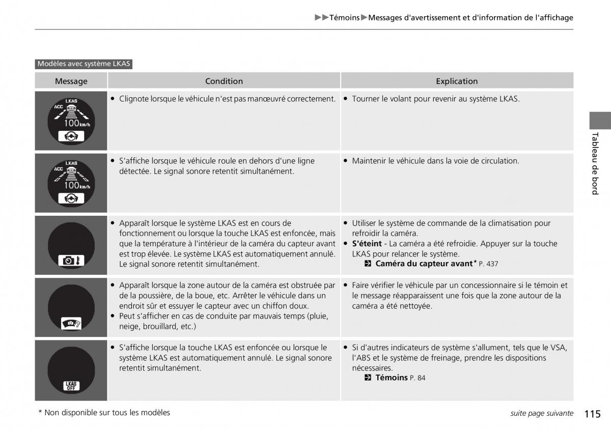 système LKAS est automatiquement annulé. Le signal sonore l'ABS et le système de freinage, prendre les dispositions