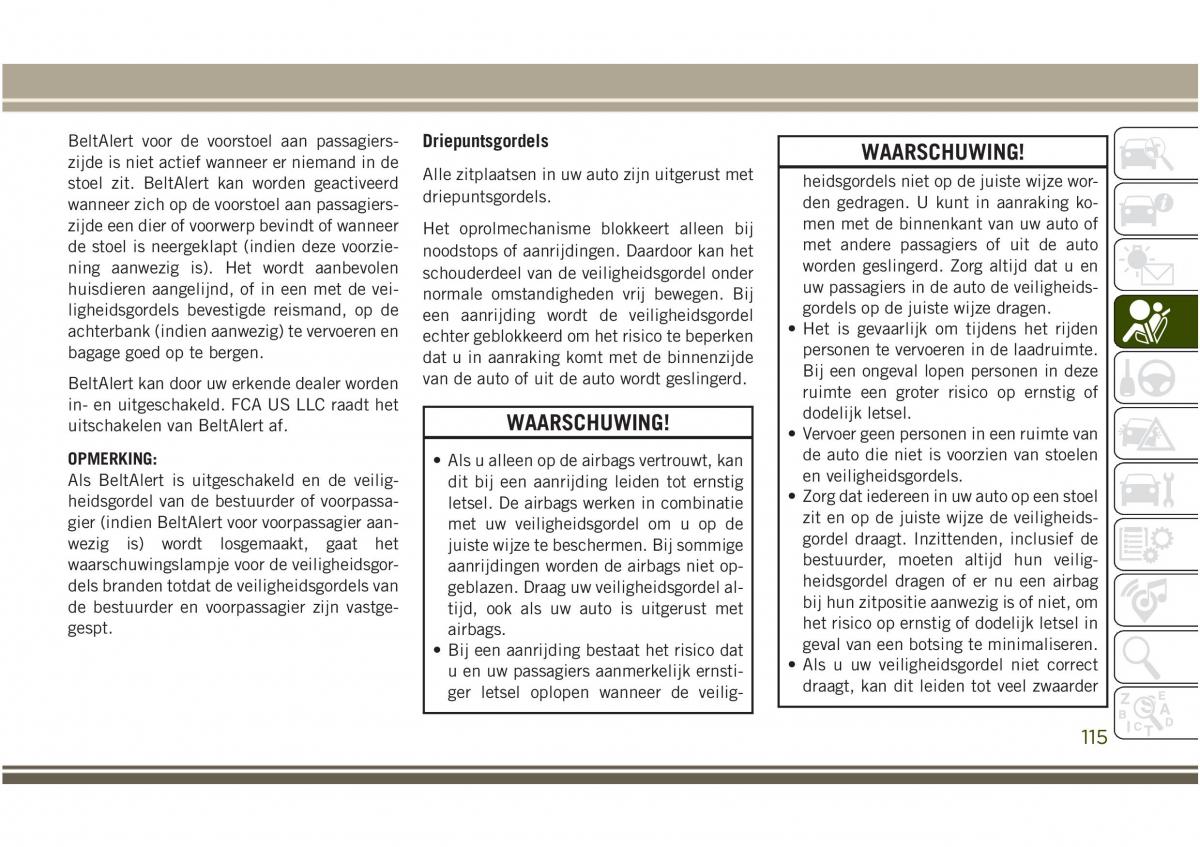 in- en uitgeschakeld. FCA US LLC raadt het ruimte een groter risico op ernstig of