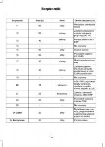 Bezpiecznik Prąd[A] Kolor Obwódzabezpieczany