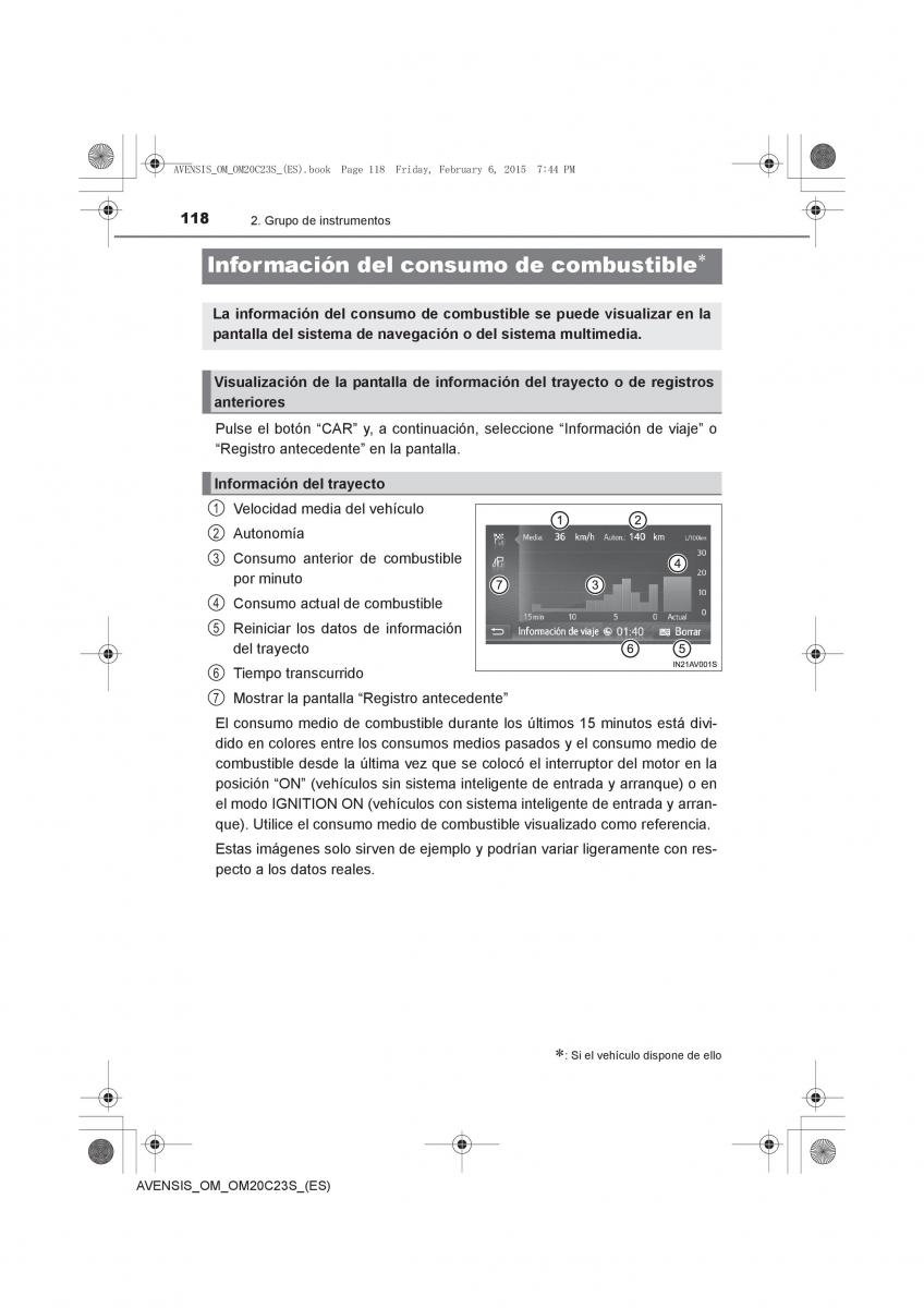 AVENSIS_OM_OM20C23S_(ES).book Page 118 Friday, February 6, 2015 7:44 PM