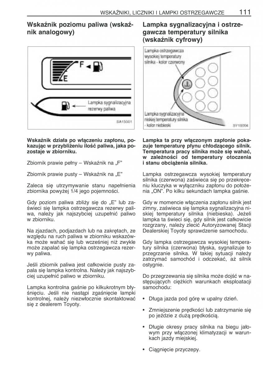 owners manual Toyota Yaris Verso - year of production: 1999, 2000, 2001, 2002, 2003, 2004, 2005 - Toyota Yaris Verso instrukcja obslugi PL