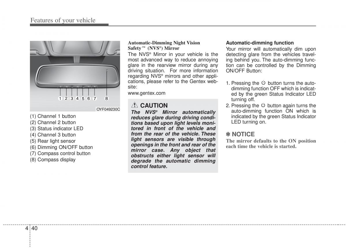 www.gentex.com dimming function OFF which is indicat-