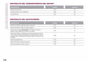 125) Si un fusible que NO está presente en esta página o en la anterior interviene, acudir a la Red de Asistencia Fiat.