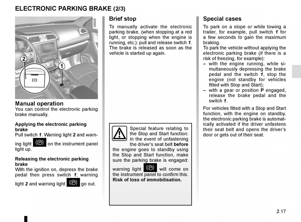 You can control the electronic parking For vehicles fitted with a Stop and Start