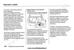 owners manual Honda Accord - year of production: 2002, 2003, 2004, 2005, 2006, 2007, 2008 - Honda Accord VII 7 instrukcja obslugi PL