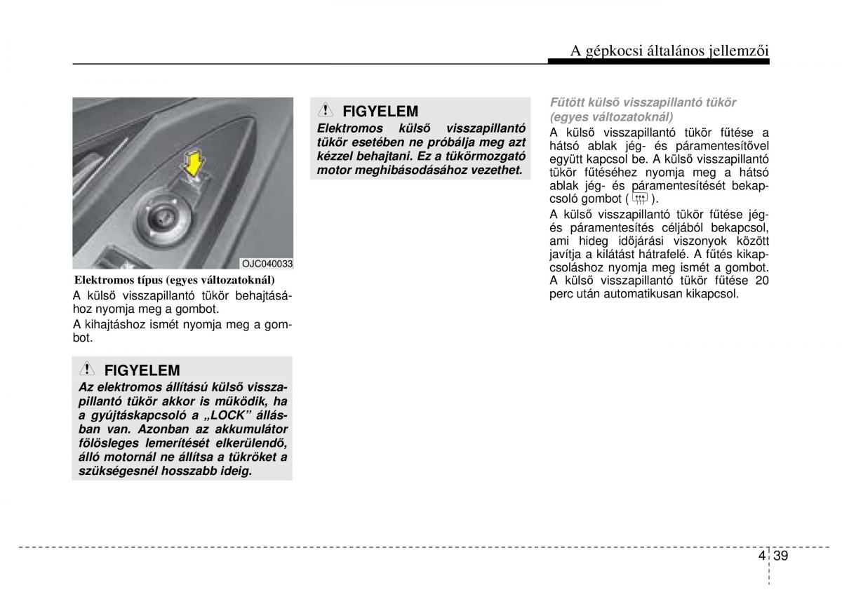 motor meghibásodásához vezethet. együtt kapcsol be. A külső visszapillantó
