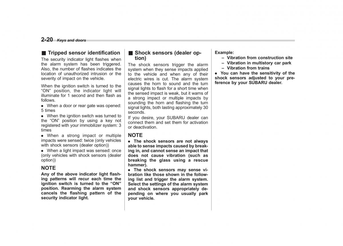 (only vehicles with shock sensors (dealerdoes not cause vibration (such as