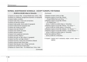 NORMAL MAINTENANCE SCHEDULE- EXCEPT EUROPE,FOR RUSSIA