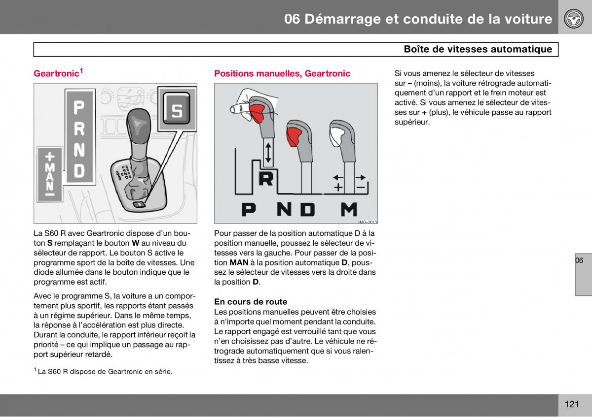 programme sport de la boîte de vitesses. Une tion MAN à la position automatique D, pous- 06