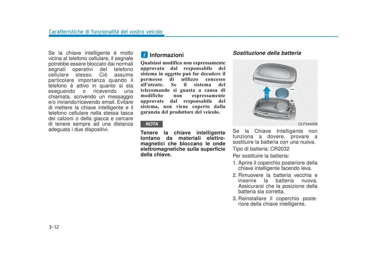 della chiave. Per sostituire la batteria: