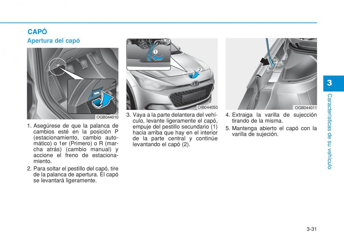 OGB044010 3. Vaya a la parte delantera del vehí-4. Extraiga la varilla de sujección