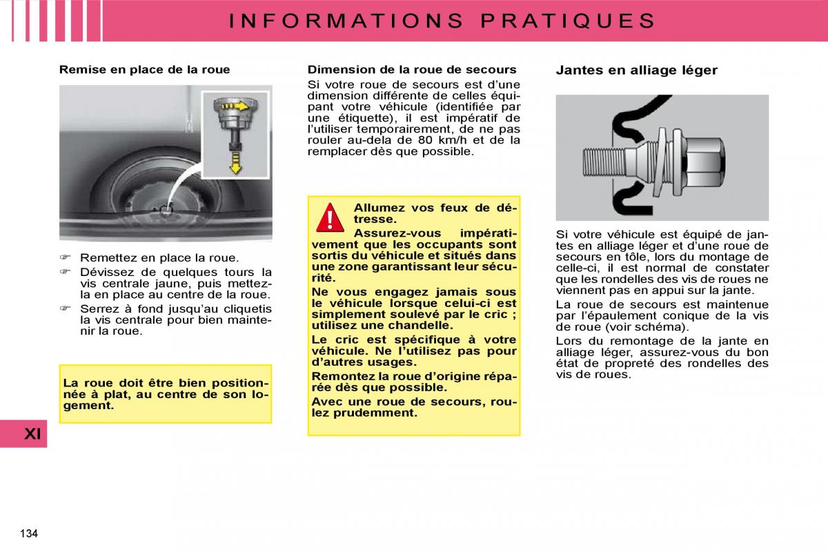 Remettez en place la roue. sortis du véhicule et situés dans secours en tôle, lors du montage de