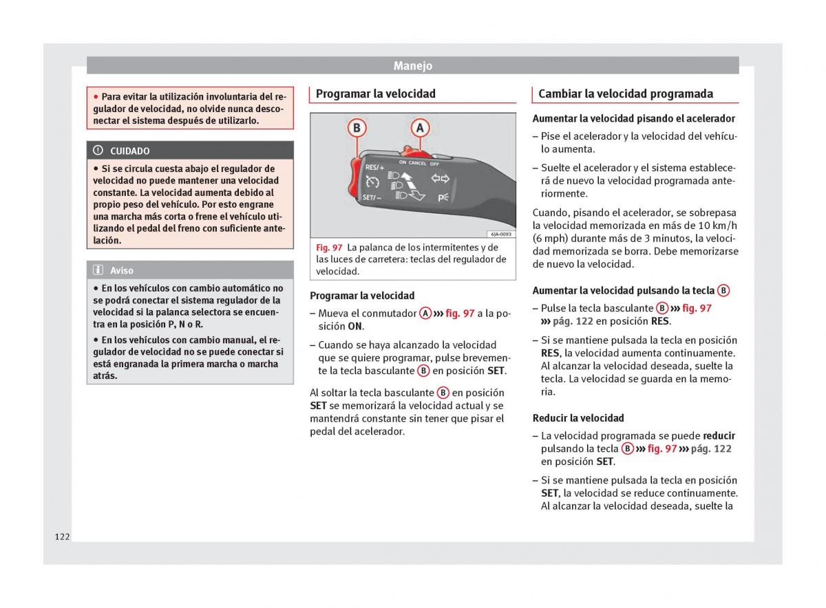 velocidad si la palanca selectora se encuen-– Mueva el conmutador A ››› fig. 97 a la po-