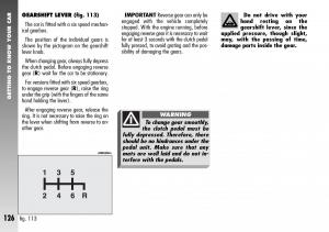 HAND BRAKE (fig. 112) WARNING IMPORTANT The handbrake lever ( A)