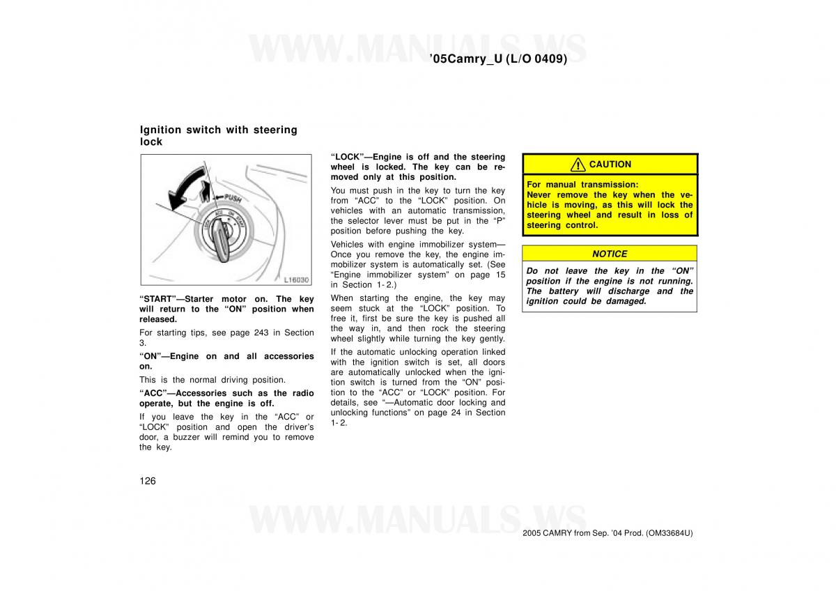 “ACC”—Accessories such as the radiotion to the “ACC” or “LOCK” position. For