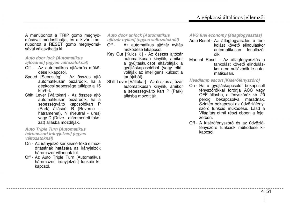Auto door unlock [Automatikus AVG fuel economy [átlagfogyasztás]