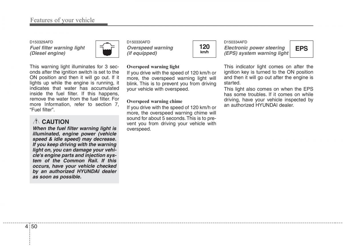 Fuel filter warning light Overspeed warning 120 Electronic power steeringEPS