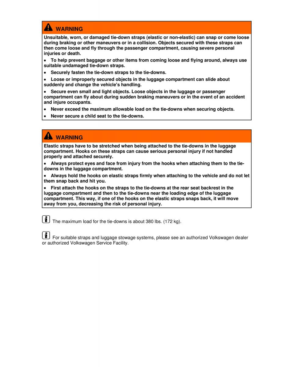 For suitable straps and luggage stowage systems, please see an authorized Volkswagen dealer
