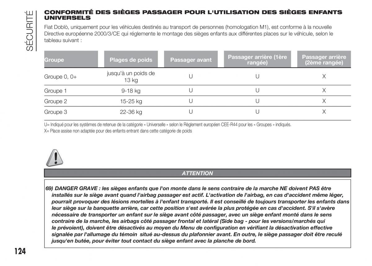 Fiat Doblò, uniquement pour les véhicules destinés au transport de personnes (homologation M1), est conforme à la nouvelle